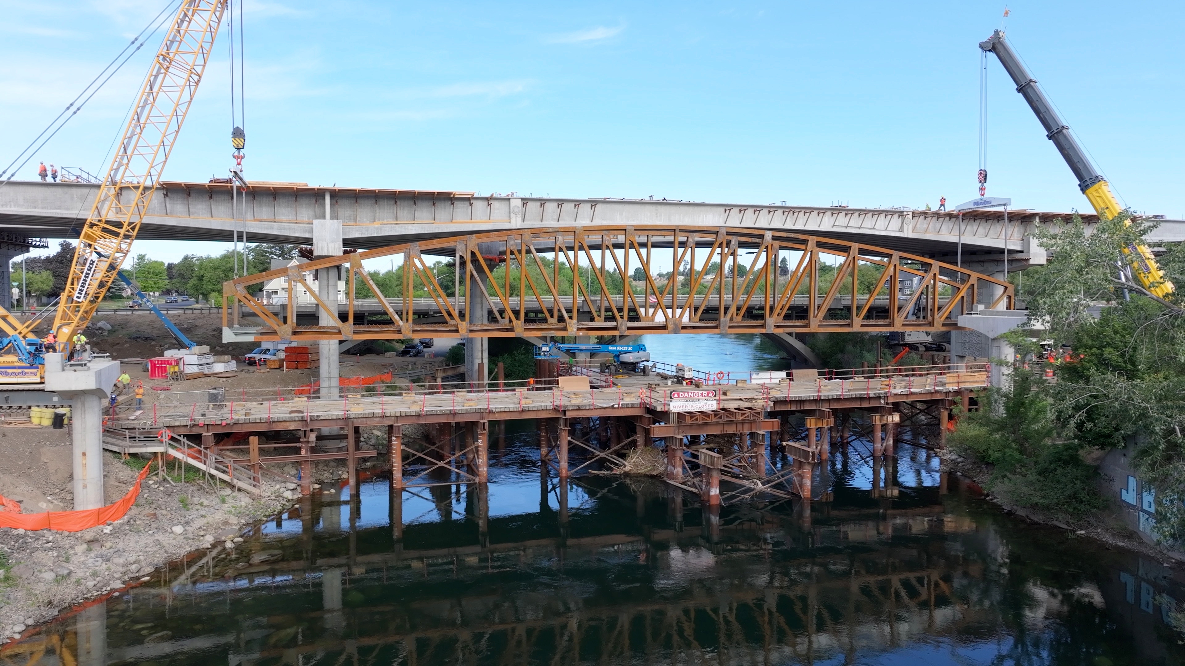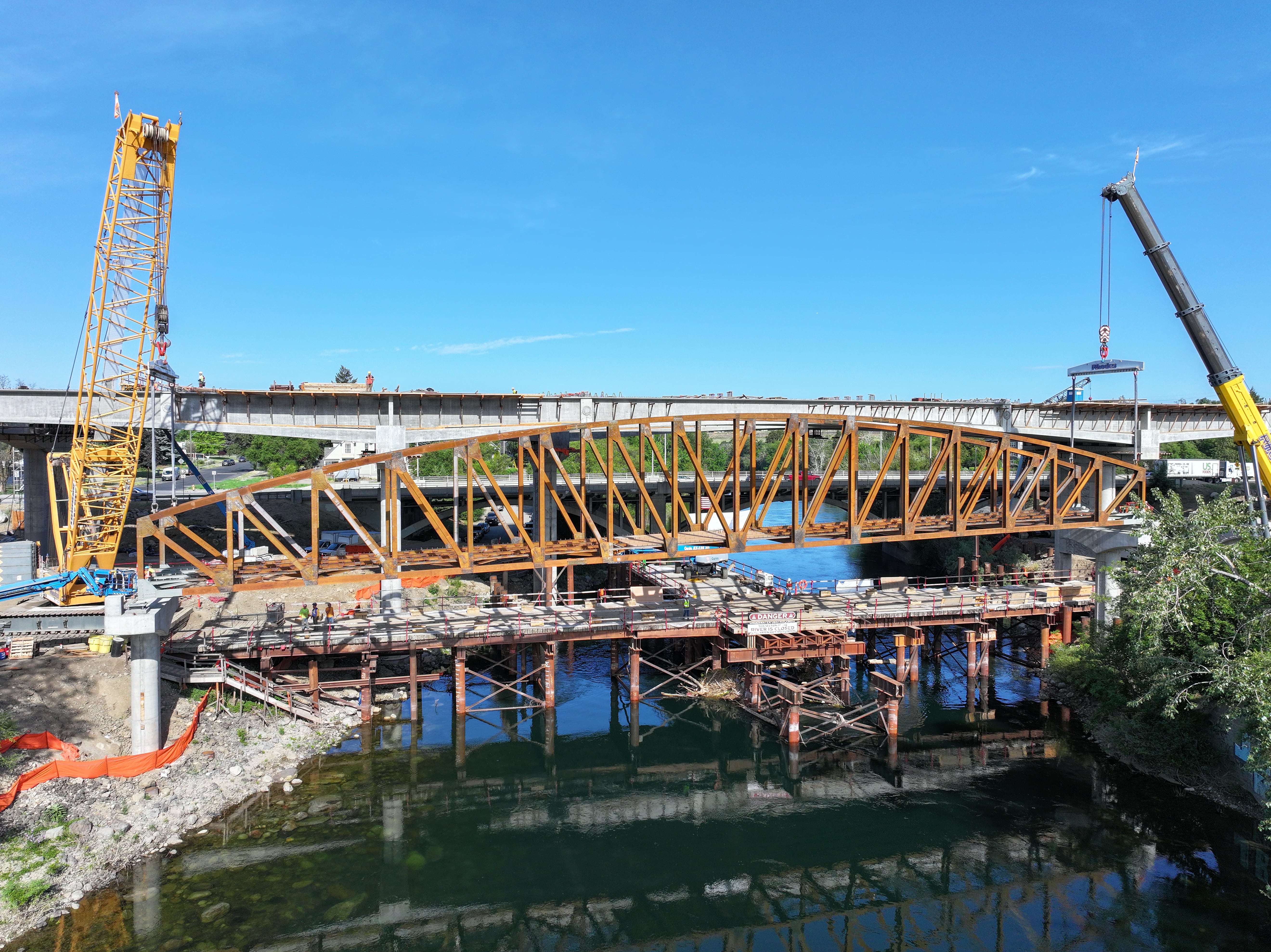 Project Details The NSC River Crossing involves the construction of new mainline bridges over the Spokane River, and a contractor-designed steel truss bicycle/pedestrian bridge for the Children of the Sun Trail. The Project requires extensive work bridge for access, and careful attention to environmental permits. Once completed, the River Crossing will connect to Kuney's NSC River to Columbia Project to the North, and the NSC Sprague to Spokane River Phase 1 Project to the south. The River Crossing is Kuney's sixth and largest project on the North Spokane Corridor which, once completed, will connect I-90 with US-395 and Highway 2.